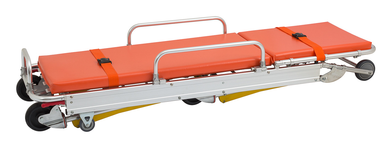 When destination arrived, pulling out the safety handle, the stretcher’s legs will unfold automatically.