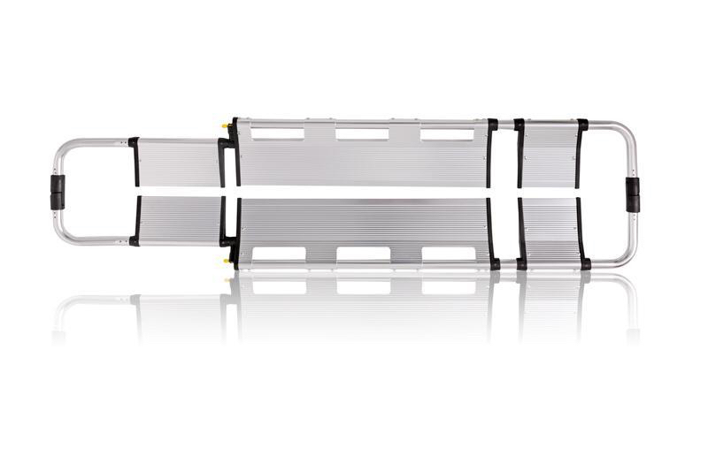 It is a separately-type stretcher to transfer fractured and serious patients. At both ends of the stretcher, a hinged and joined arrangement is set in the middle, which can set the stretcher into two parts and it is easy to lock and unlock. The stretcher can strengthen the patients at original place; it can reduce the further hurt of the patients, the patients can be quickly & easily put in the stretcher and also the stretcher can be taken out from the back of the patient without moving the patient. The length of the stretcher can be adjusted according to patients’ body. The foot end is designed as a narrow-frame structure.